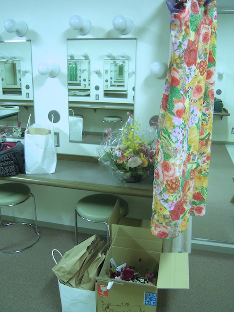 箱から出したお花を鏡前に置いて、今日の衣装を吊るして、なんだかいつもよりも楽屋っぽい。