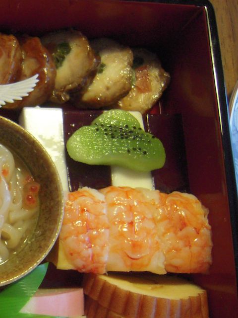 口取りの紅白羹(こうはくかん)の上の飾りにしてみました。