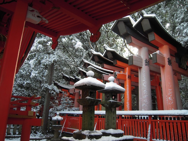 いつもはお正月の1日2日は外して初詣に行きますが、こんなに雪が積もったら伏見稲荷の混雑がましかもしれないと思い立って、今日2日の朝に行くことにしました。