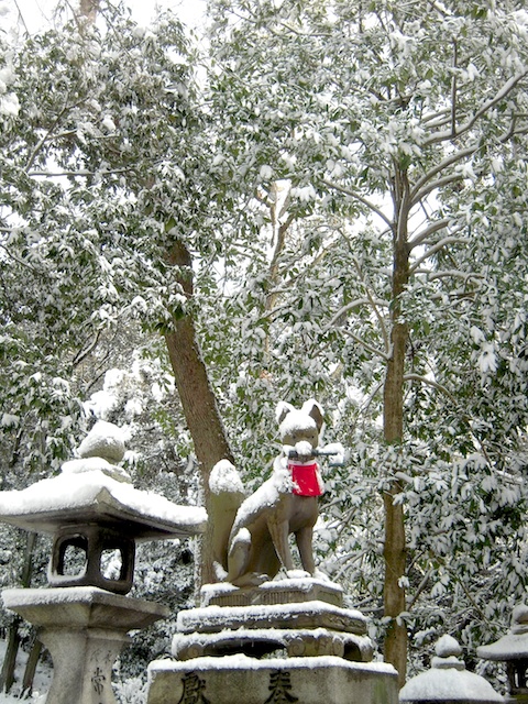 伏見稲荷のあちらこちらにおわします狐さんも雪をかぶっていらっしゃいました。