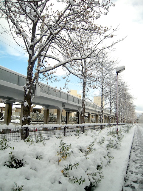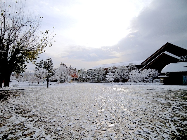 降った雪が溶けないで見る見る間に積もってゆきます。
